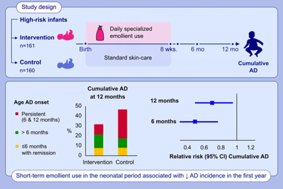 Allergy 早期开始短期使用润肤剂预防高危婴儿特应性皮炎