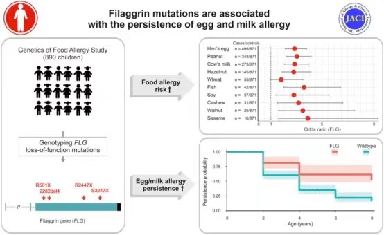 原标题:丝聚蛋白功能缺失突变与鸡蛋和牛奶过敏持续相关