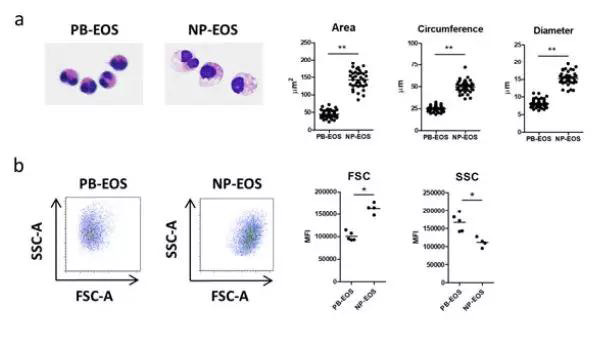 结论:炎性组织源性嗜酸粒细胞具有一种特殊的表型,其脂肪酸代谢失调可作为治疗的靶向,以控制嗜酸粒细胞性炎症疾病。