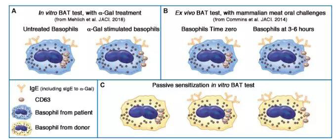 综上所述,尽管嗜碱性细胞活化试验(BAT)有潜力成为临床实践中有用工具,但到目前为止,BAT在解决引起超敏反应的免疫机制方面发挥了更重要的作用。在α-半乳糖综合症(一种具有几个不寻常特征的食物过敏)病例中尤为确切。很明显,在未来嗜碱性细胞及肥大细胞活化试验将提供更多见解。