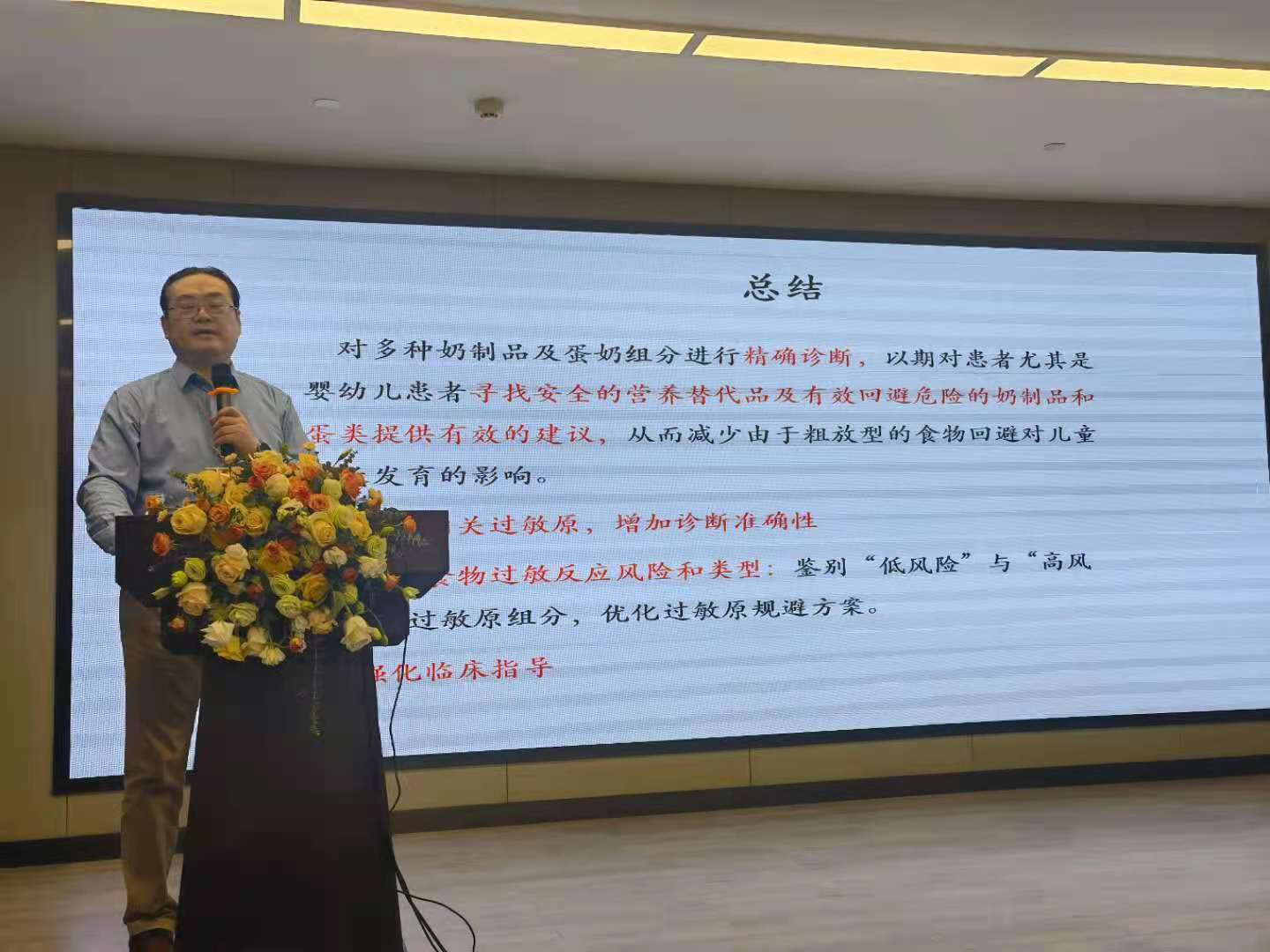 浙江大学医学院附属杭州市第一人民医院耳鼻咽喉科主任 李勇教授 带来主题为“儿童过敏性鼻炎的诊治”的学术报告。李勇教授指出过敏性疾病的治疗前提是精准的过敏原检测,只有全面、有效查出过敏原,才能对症治疗,从根本上解决问题,而特异性IgE和食物特异性IgG4的检测是诊断过敏性疾病的关键。 尤其建议婴幼儿患者需进行蛋奶组分的精确诊断,以期对寻找安全的营养替代品及有效回避危险的奶制品和蛋类提供有效的建议,从而减少由于粗放型的食物回避对儿童生长发育的影响。