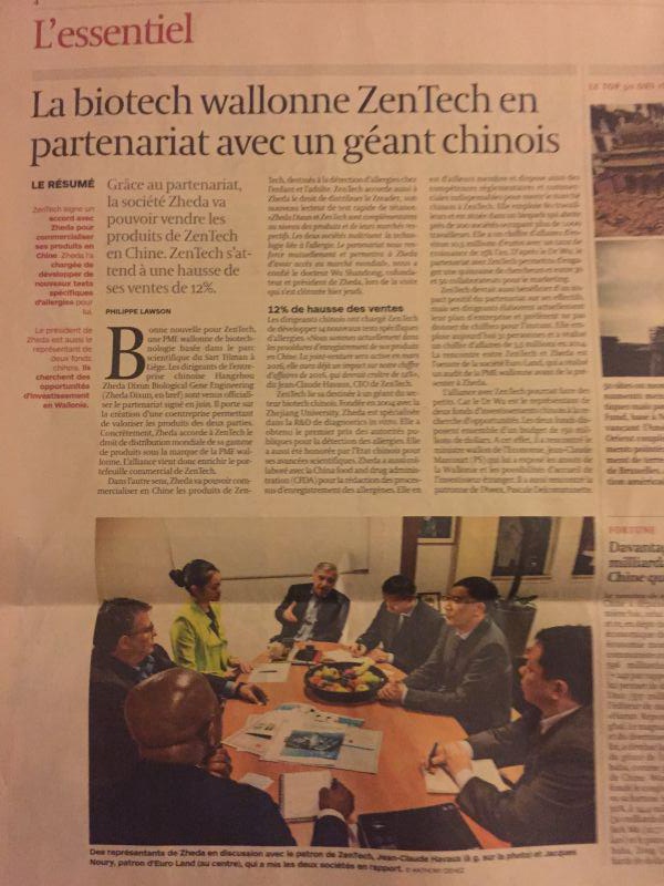 报道浙大迪迅与比利时Zentech S.A.公司合作
