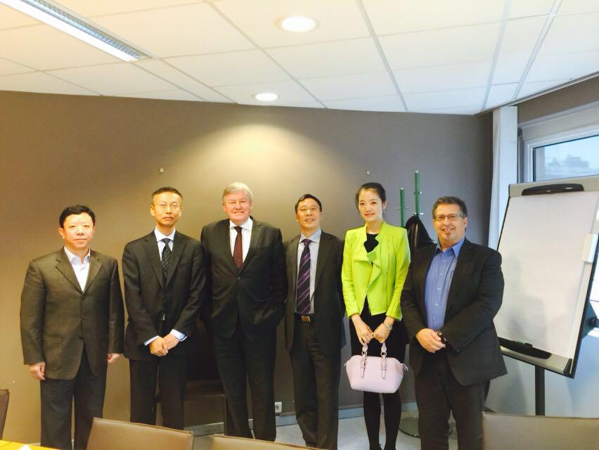2015年10月14日比利时瓦隆大区副主席兼经济部长(中图中)MARCOURT”和瓦隆大区投资发展署署长(右图女)“Pascale DELCOMMINETTE的接见