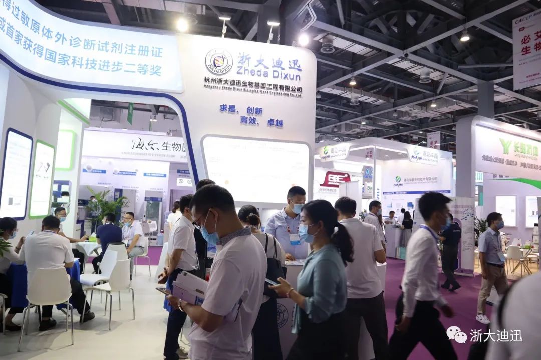 作为国内首家获得过敏原体外诊断试剂SFDA注册证的生产企业,浙大迪迅专注过敏诊断十七载,秉承“求是、创新、高效、卓越”理念,为过敏性疾病患者提供最优质的过敏原检测服务。浙大迪迅在本次博览会设立特装展台,隆重推出本公司新系列产品--100项食物特异性抗体IgG检测试剂盒(蛋白芯片法),受到众多著名专家学者和经销商伙伴的强烈关注,纷纷前来观摩学习,交流经验。